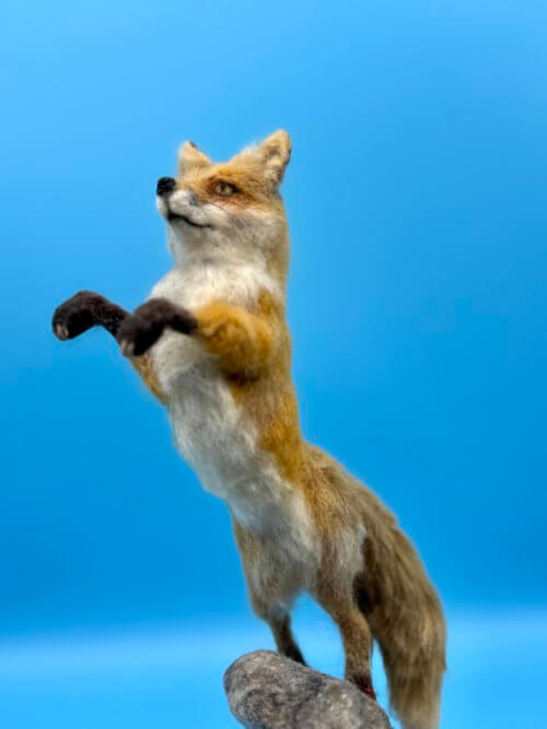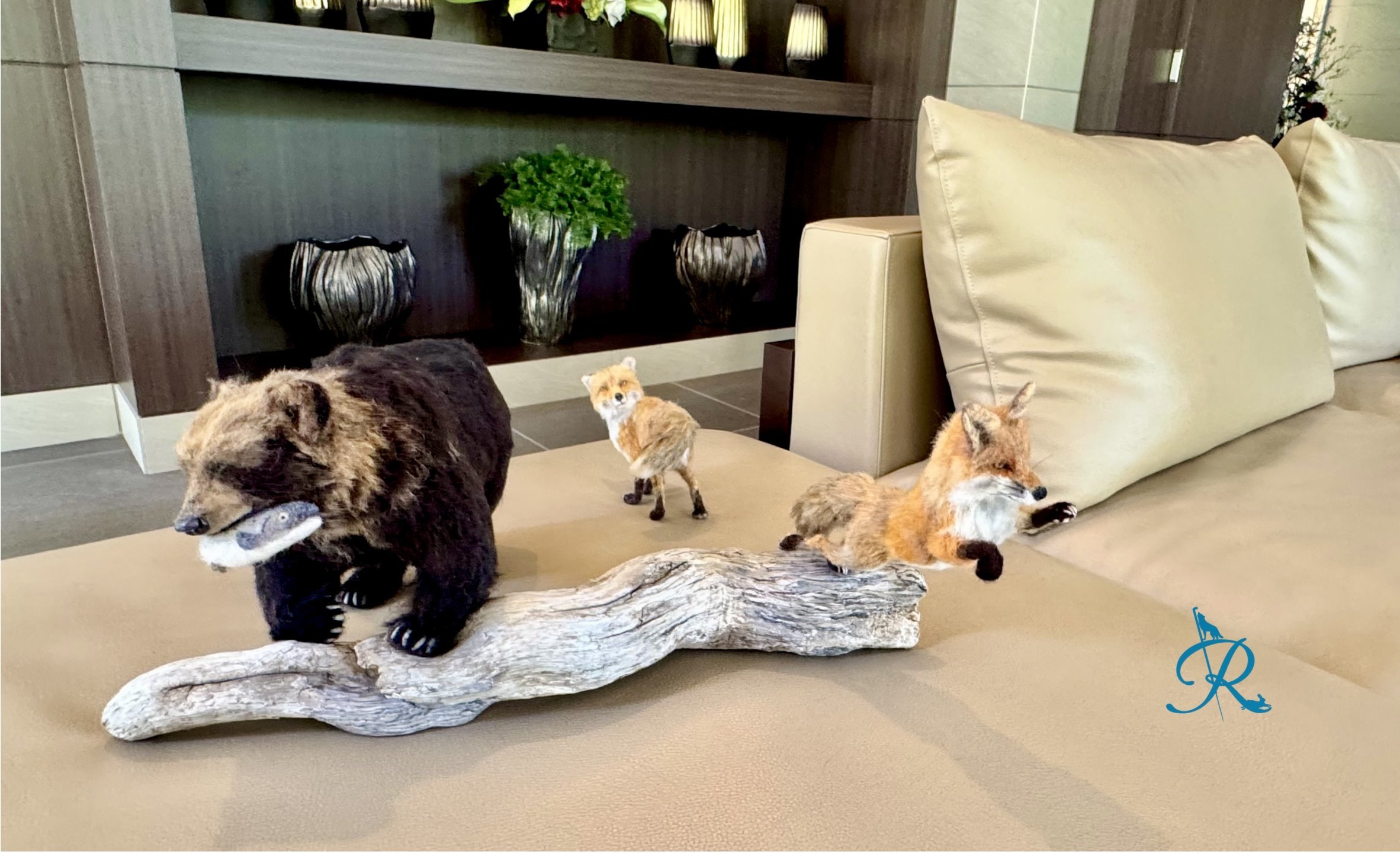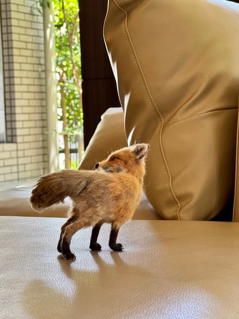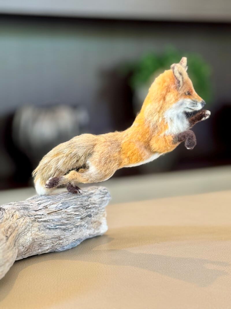 羊毛フェルトの羆とキツネの秋