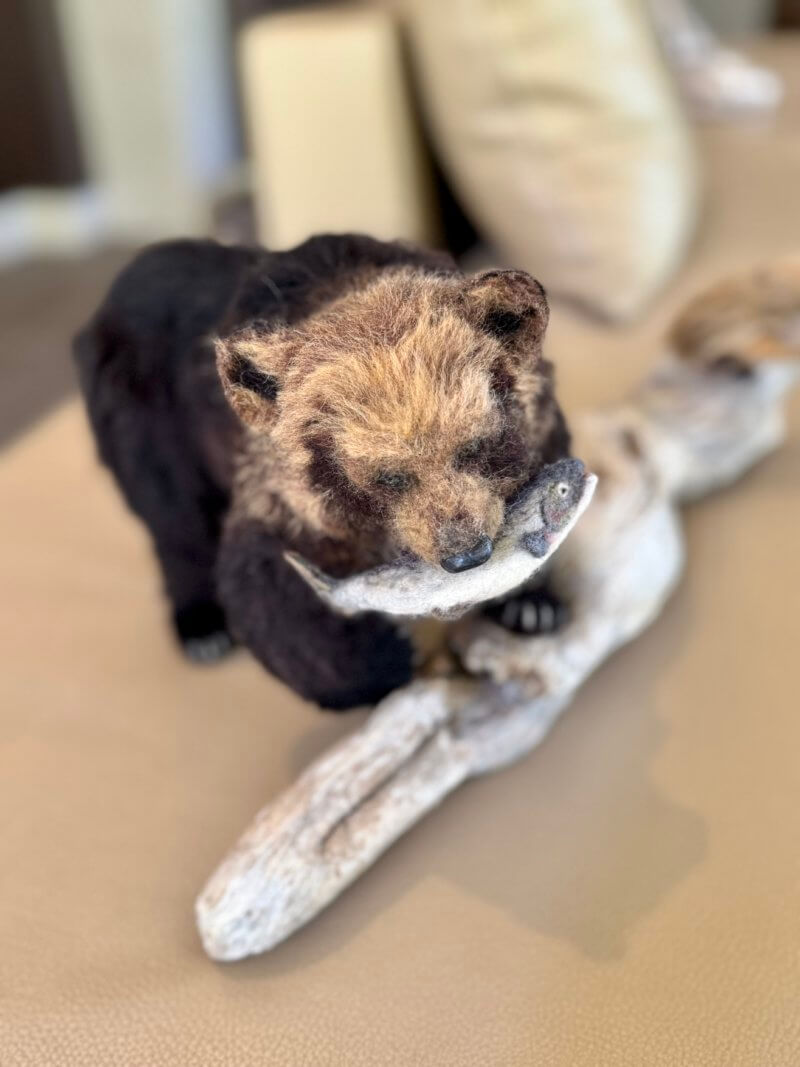 前に作った羊毛フェルトのヒグマを軸に場面を作りました。